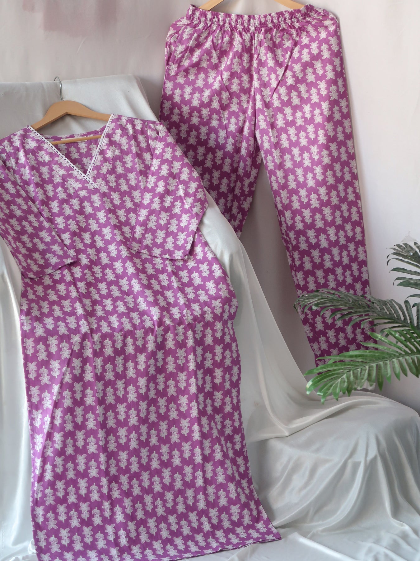The kurta, tailored in a classic straight style. Each bloom is intricately printed, creating a mesmerizing tapestry of color and texture reminiscent of a majestic garden in full bloom.