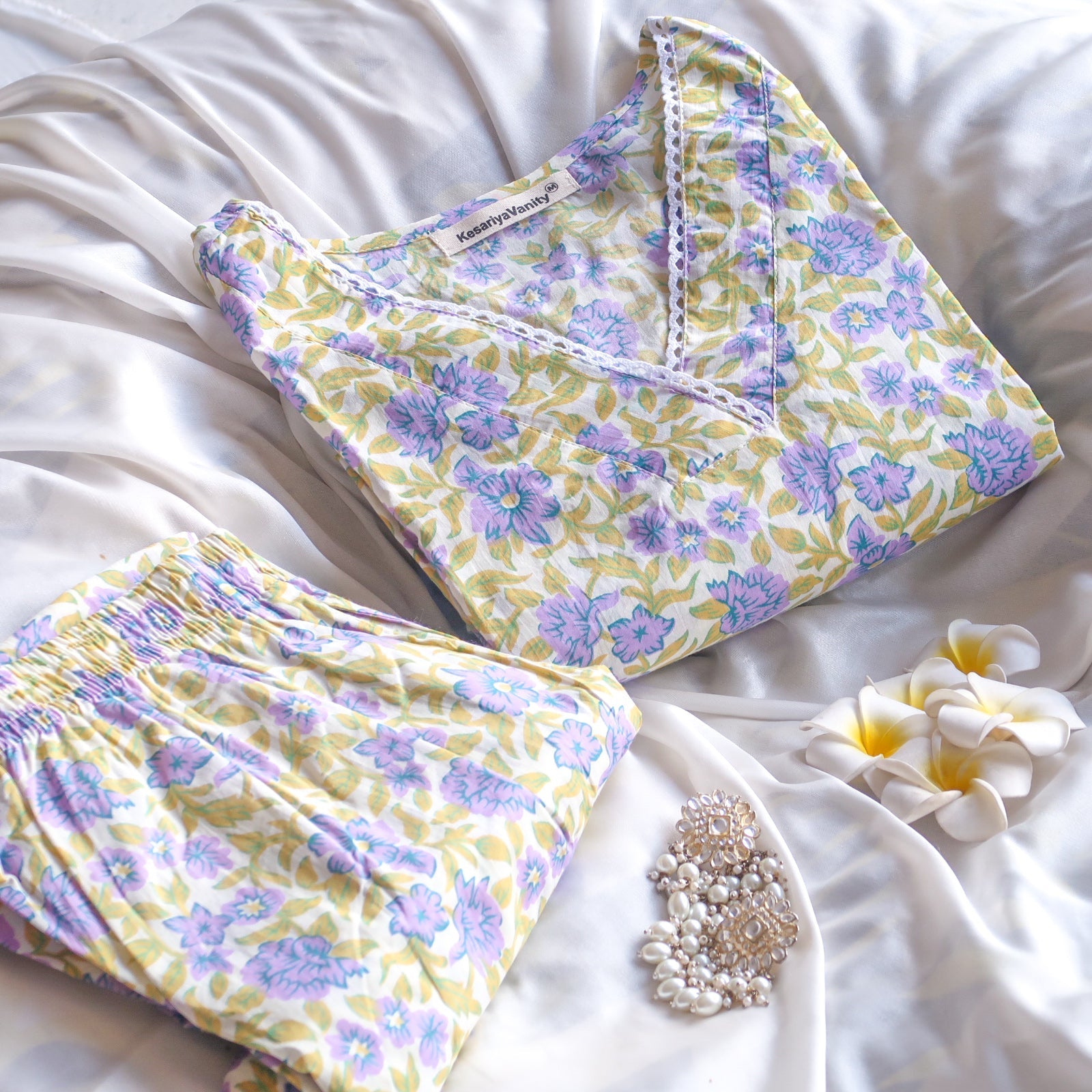 The kurta, tailored in a classic straight style. Each bloom is intricately printed, creating a mesmerizing tapestry of color and texture reminiscent of a majestic garden in full bloom.